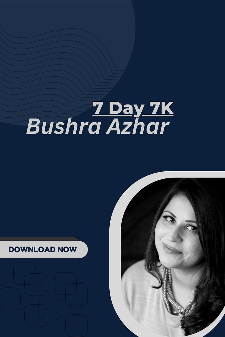 - Bushra Azhar’s “7 Day 7K” course teaches entrepreneurs to generate $7,000 in sales within seven days using actionable persuasion strategies.